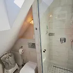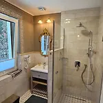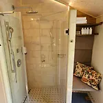 As casas de banho também incluem casa de banho separada e chuveiro. Há secador de cabelo, roupões e toalhas para o conforto dos hóspedes.